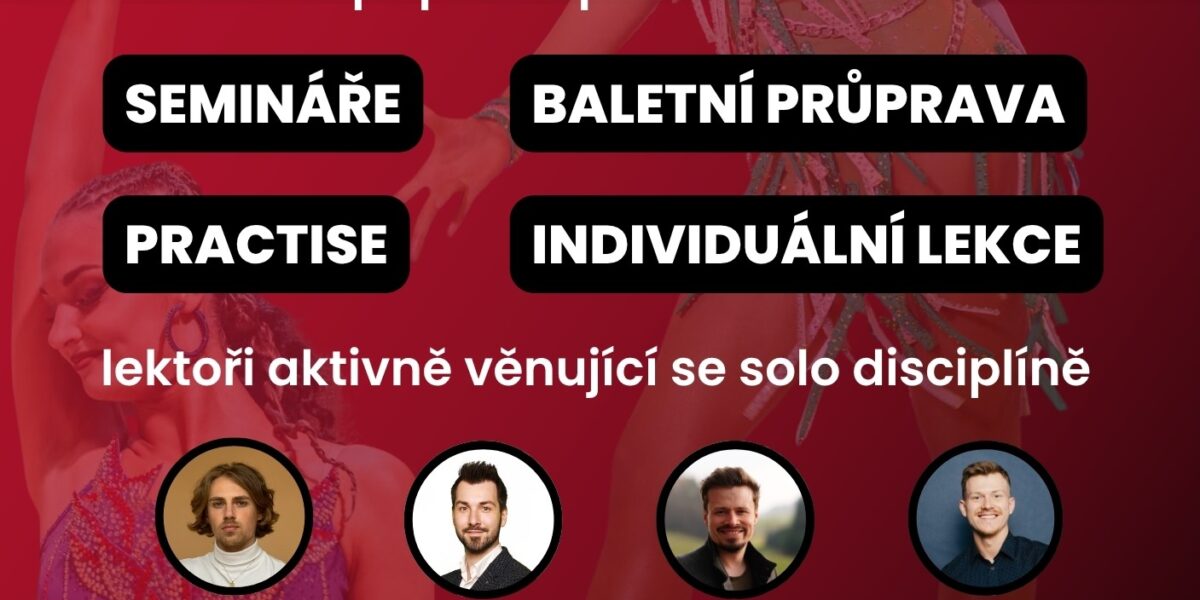 V neděli 17.5.2026 se v naší taneční škole koná jednodenní taneční camp zaměřený na solo tanečnice. Potká se zde více lektorů i tanečnic z jiných klubů a bude to tak vhodná příprava před MČR družstev solo, které se koná dva týdny poté. Těšit se můžete na skupinové semináře, individuální lekce, practisy a také baletní průpravu s baletkou Sabinou Bažantovou.